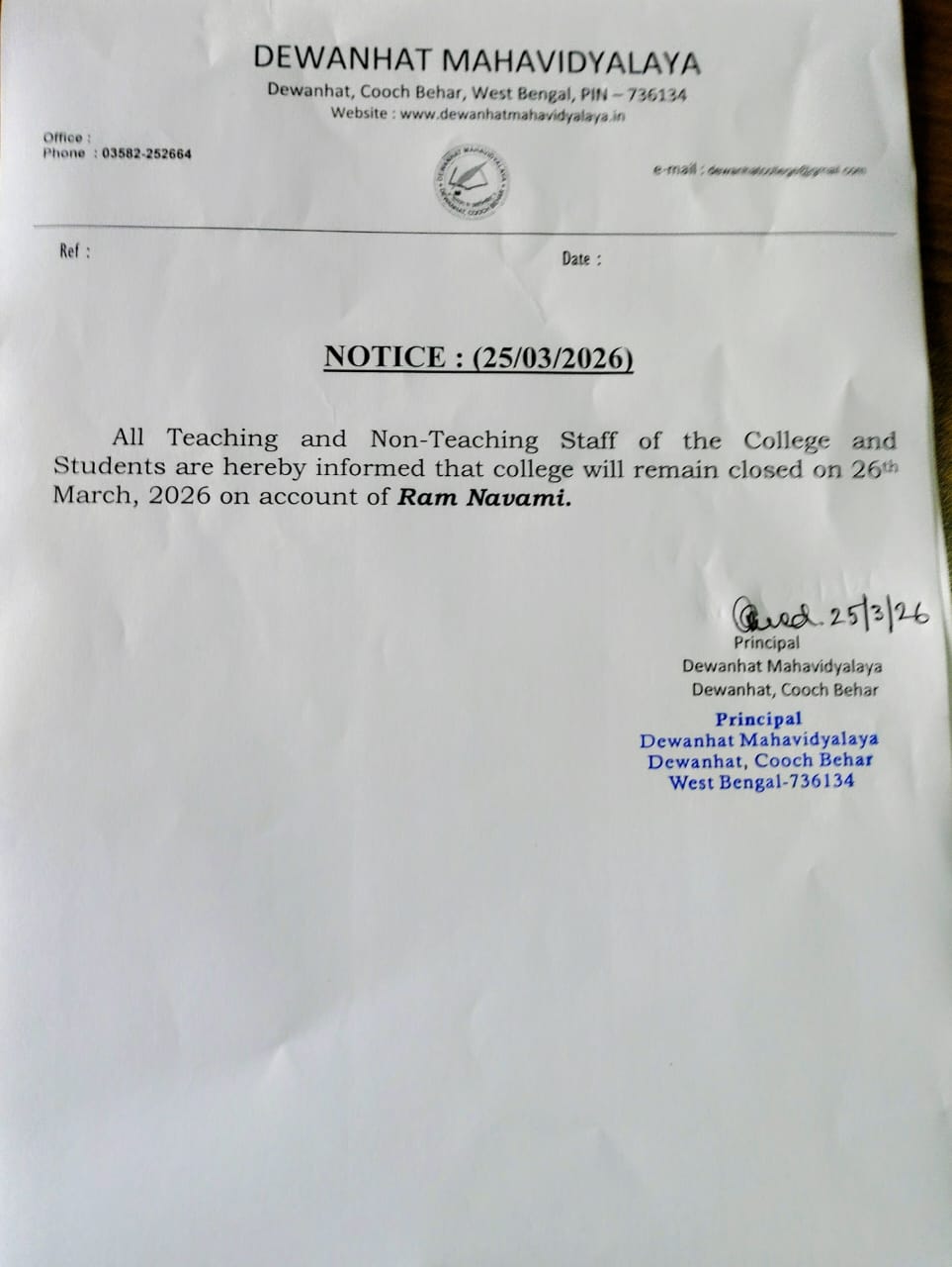Notice for Holiday on 26.01.2026 -
